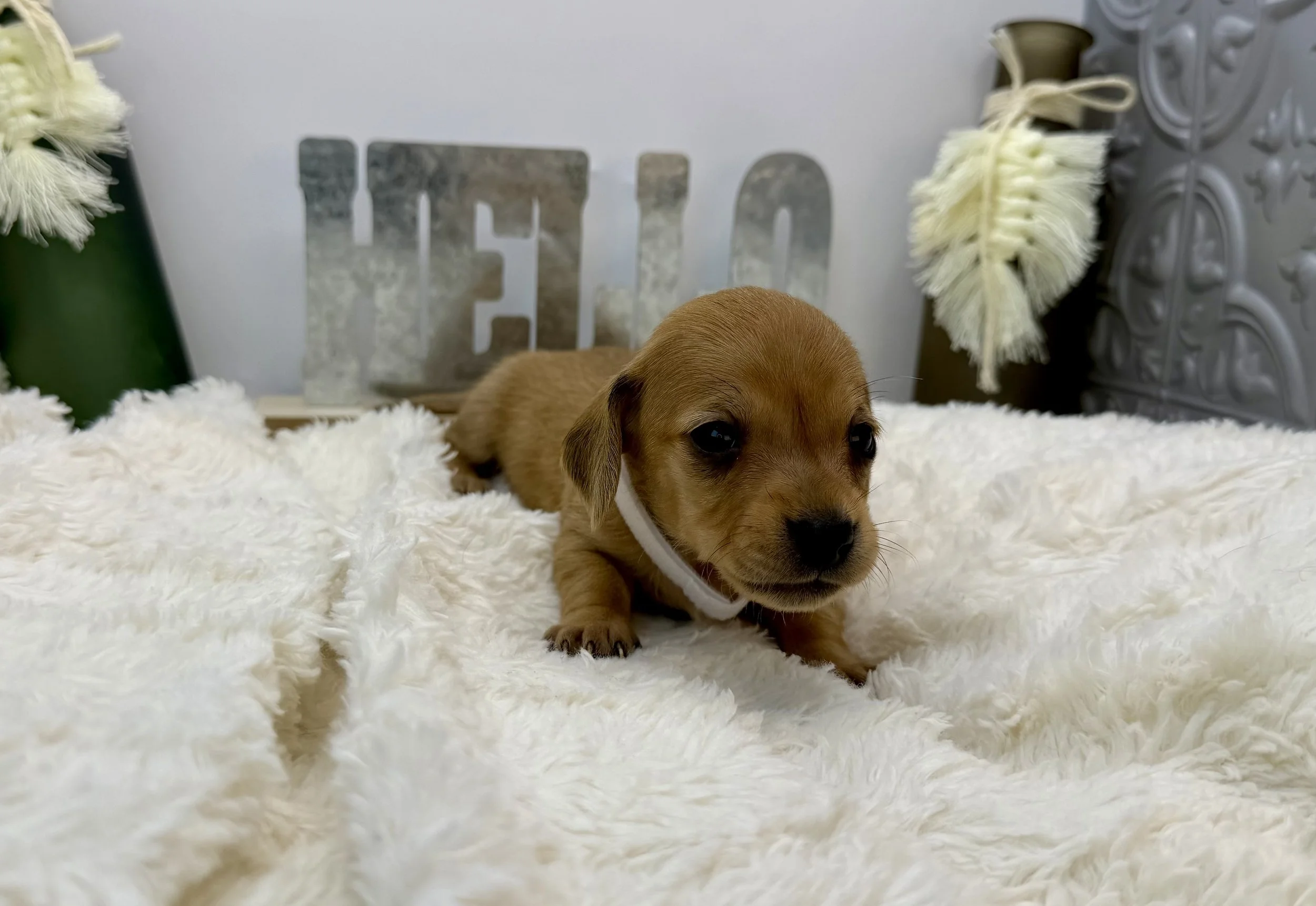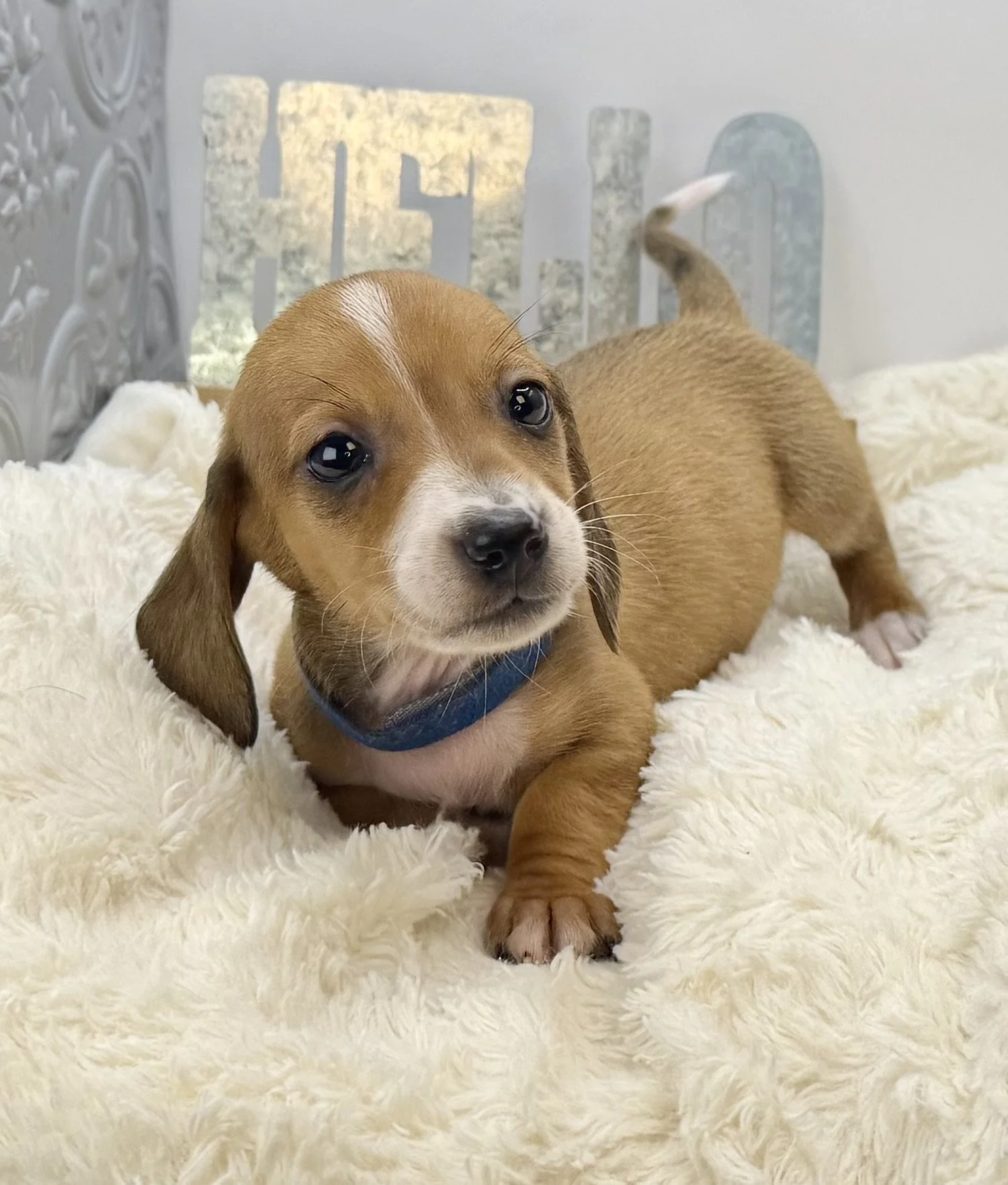 Meet Larry! Larry is a cream red smooth coat dachshund! He is available for adoption!